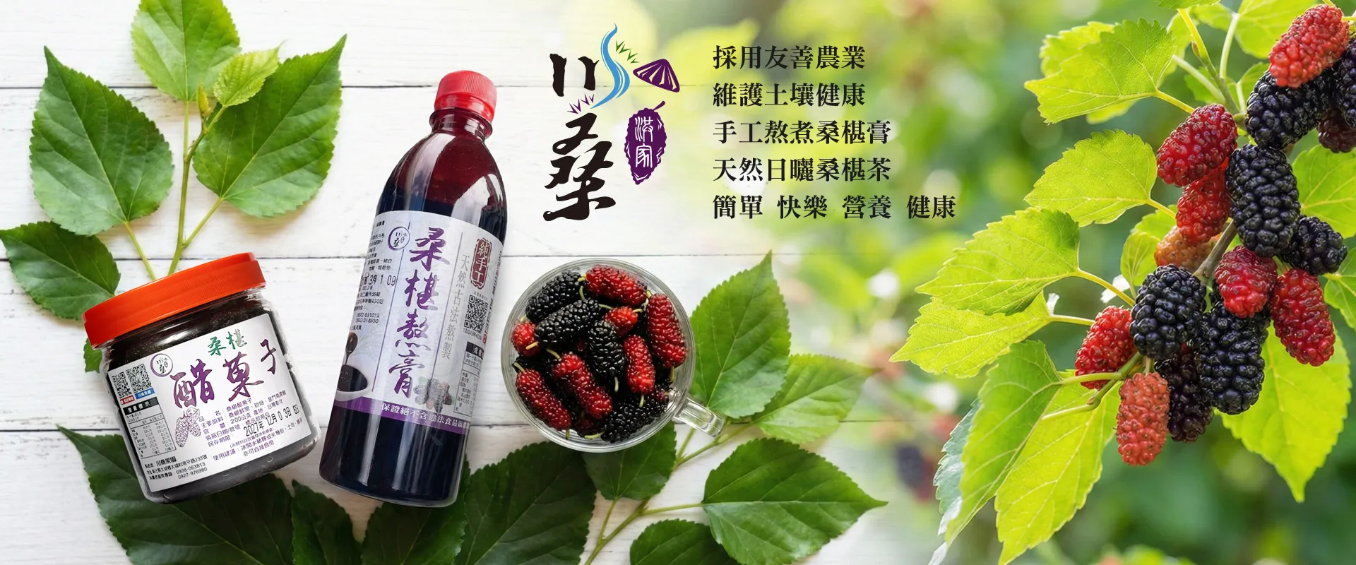 嚴格控管產品品質,僅採用當天採收的新鮮漿果,加工製造各式桑椹製品。